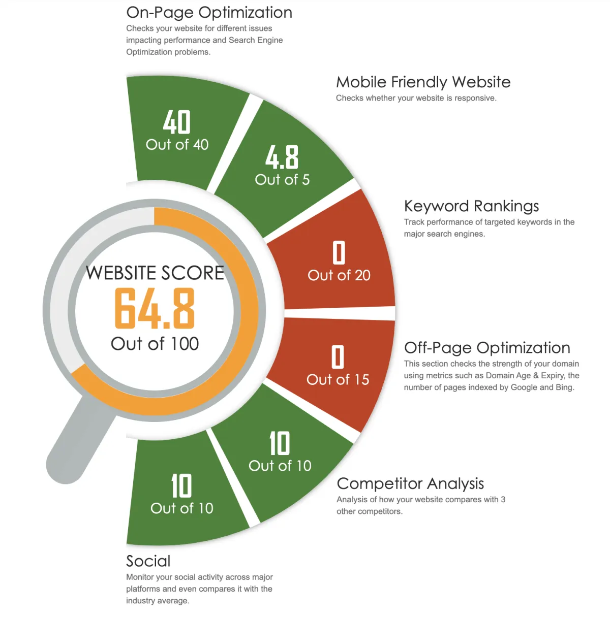 Receive a free Comprehensive website Assessment sent Immediately to your e-mail inbox. the audit will show all the Strengths and Weakness of your sight and give you indepth solutions.
